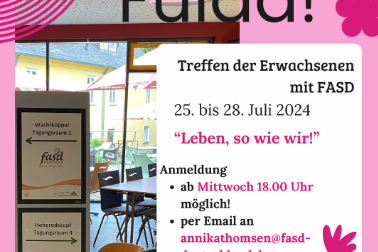 Dieses Jahr veranstaltet FASD Deutschland wieder ein Wochenende für Erwachsene mit FASD in Fulda.